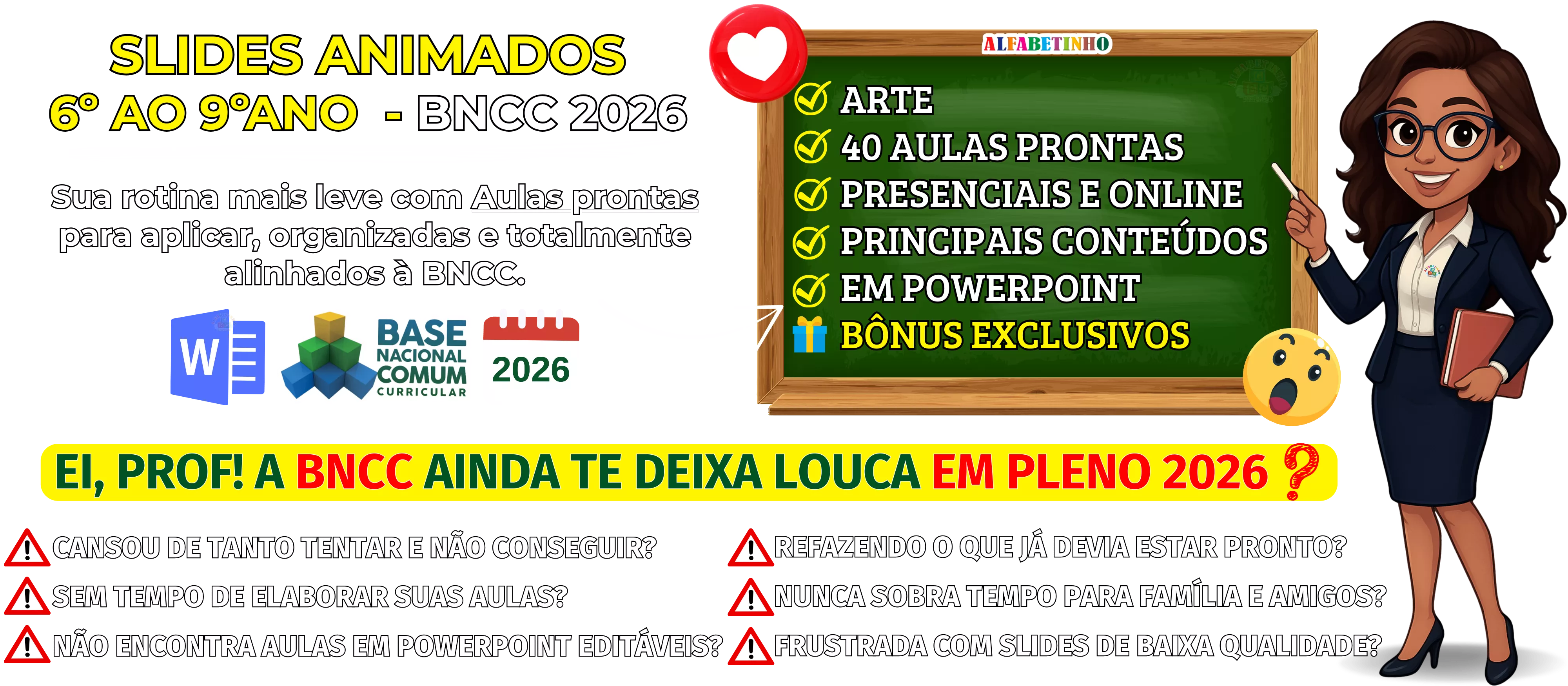 Se o seu objetivo é conquistar mais engajamento em sala de aula e ser lembrado pelos alunos pela forma como você ensina, sem precisar virar noites ou abrir mão do seu tempo livre criando slides animados, este material foi pensado para facilitar sua rotina e elevar a qualidade das suas aulas de forma prática e eficiente.